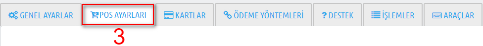 3. Adımda ise üst sekmelerdeki “Pos Ayarları” kısmına tıklayarak gerekli bilgileri doldurmalıyız.